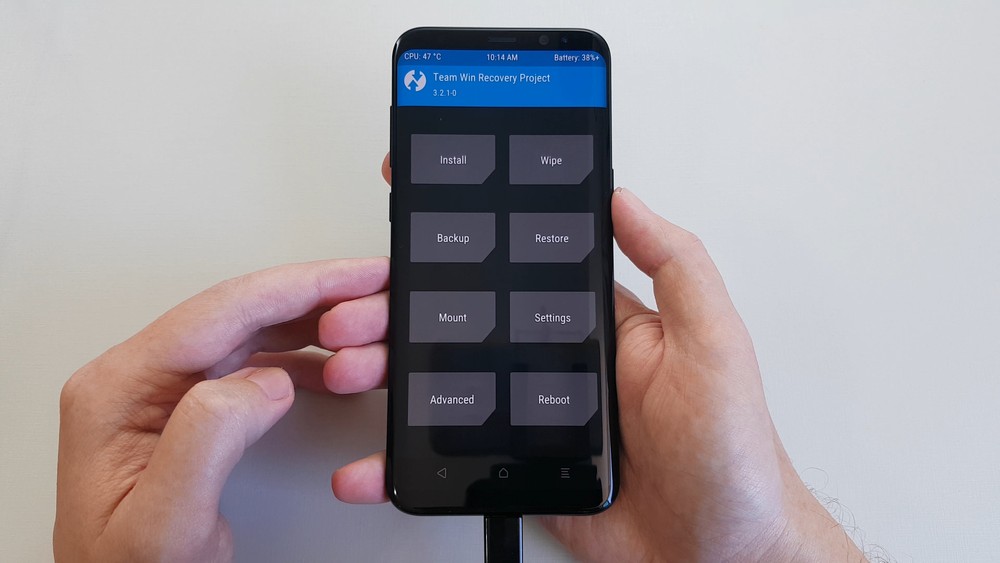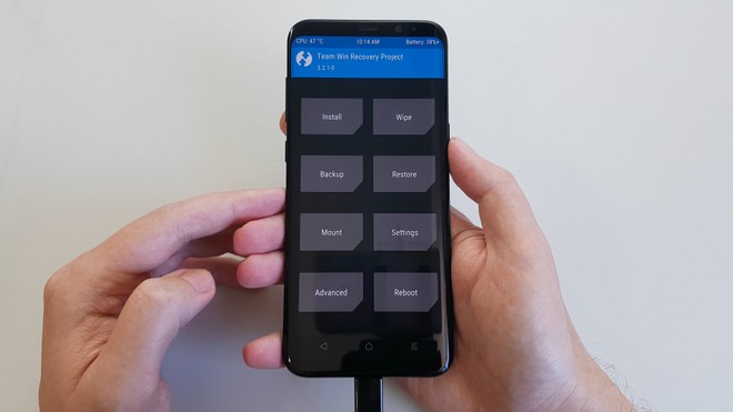 Agora vem a parte mais importante do nosso tutorial. Ao clicar em ‘Start’, você deve segurar os botões ‘volume mais + Bixby + power’ antes que o celular reinicie e tente carregar o Android. Ao aparecer a tela do TWRP poderá soltar os botões e então realizar as modificações necessárias para instalar a Alexis ROM.