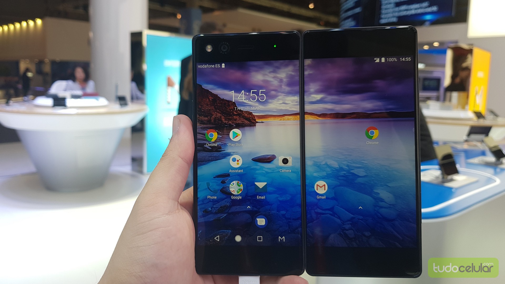 Nele, temos dois displays de 5,2 polegadas cada que podem ser usados tanto em conjunto quanto individualmente, aumentando consideravelmente a área útil para exibição de conteúdo e elevando a multitarefa a um nível completamente novo no meio dos smartphones Android.